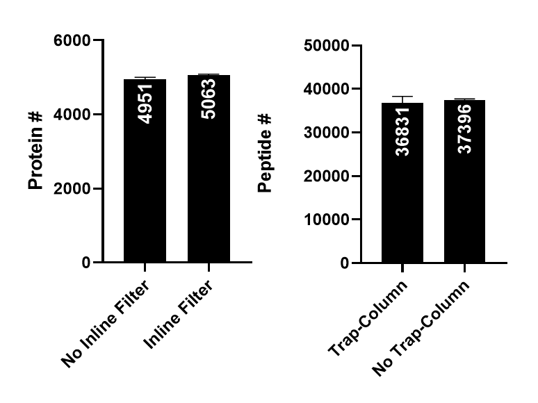 - 검출된 단백질과 펩타이드의 수에도 거의 변화가 없고 오히려 약간 높습니다.