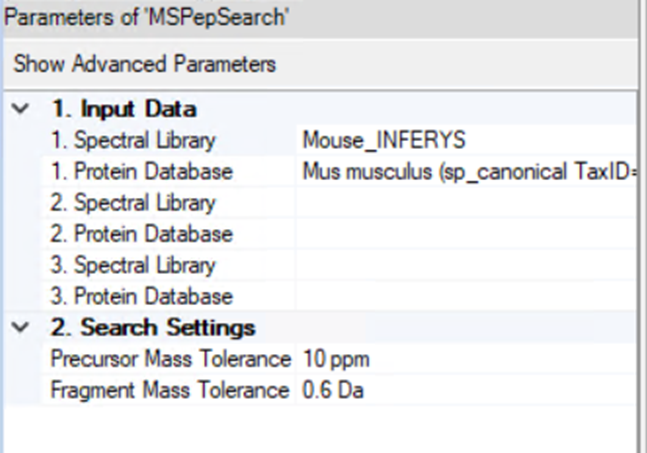 Workflow에서 MSPep search를 불러온후 클릭하여 생성된 Spectra-library를 선택하면 됩니다,.