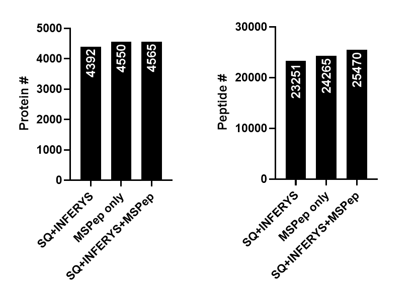 아래와 같이 MSPep Search를 통해 추가적인 단백질/펩타이를 검출할수 있는지 비교해보았습니다.