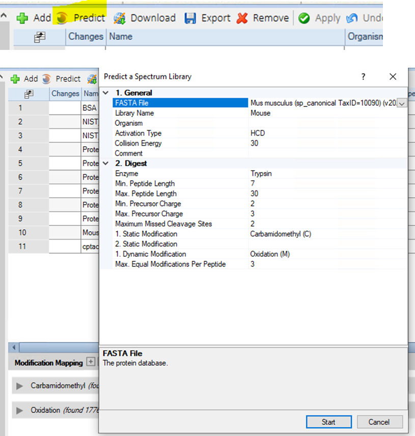 Creation of a Predicted Spectra Library