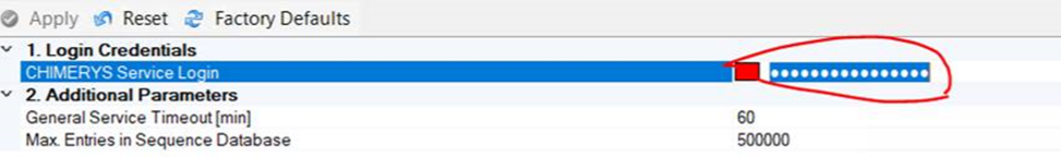 CHIMERYS node의 파라미터입니다. 로그인 전에는 Prediction Model을 선택할수 없으나 로그인후 가능합니다.