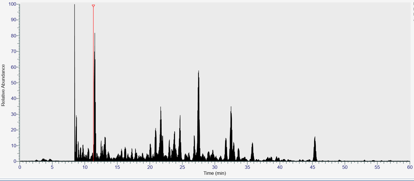 60min LG gradient에서 얻어진 크로마토그램입니다. FAIMS로 인해 S/N가 아주 높게 잘 나왔습니다.