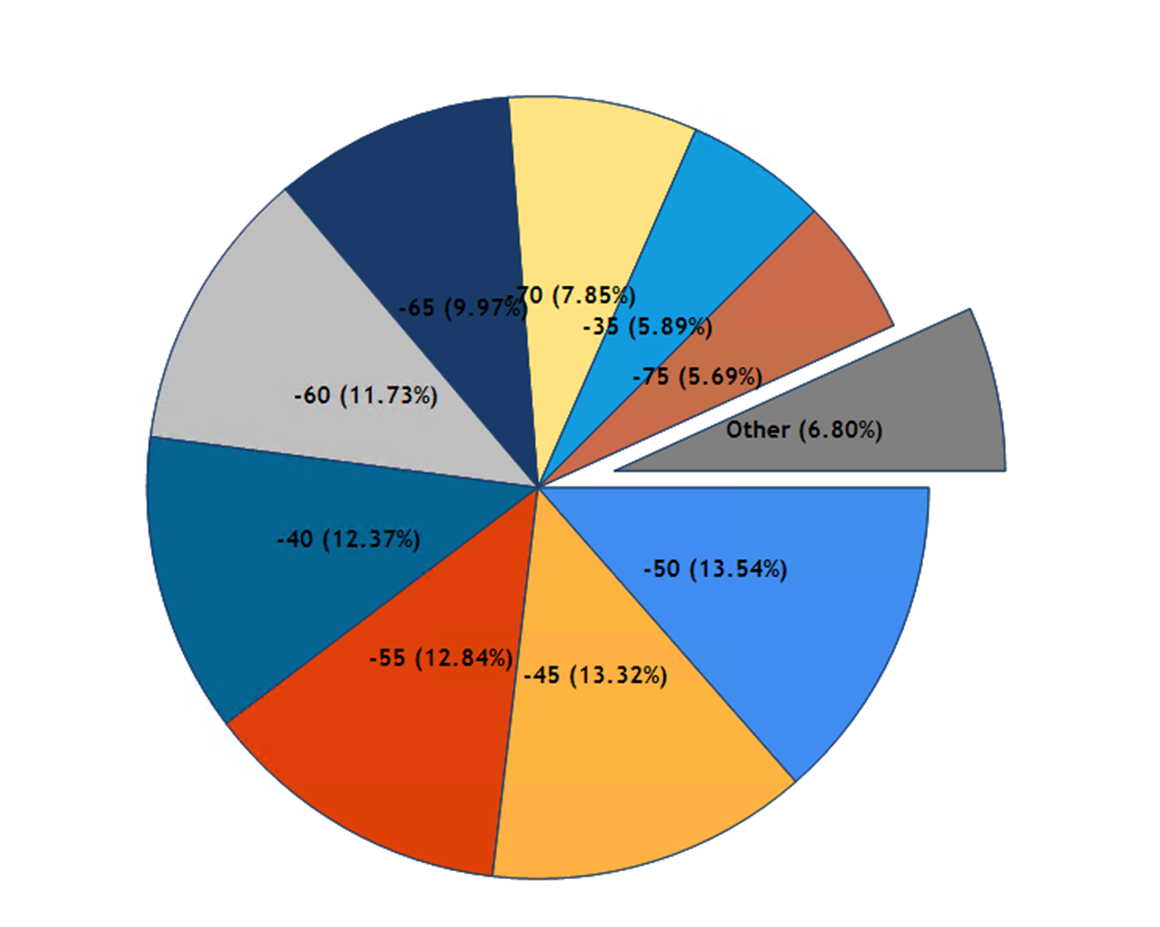 30V~80V 사이에서 각각 검출된 펩타이드의 수입니다. 40~55V사이 에서 검출수가 가장 많습니다