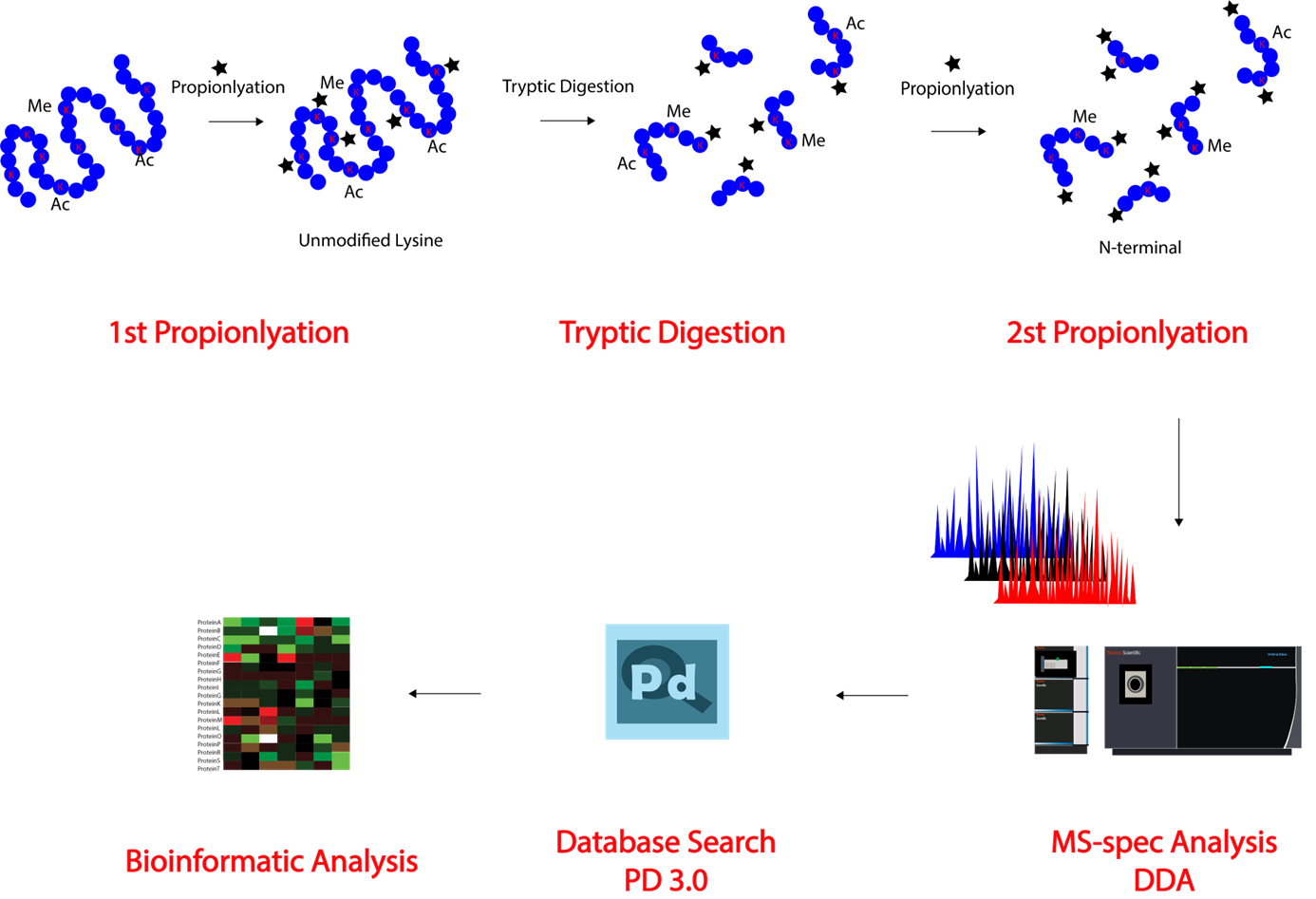 - Histone 분석에서 중요한 시료전처리 과정입니다. 프로토콜대로 진행하여 분석한후 Propionylation이 제대로 되는지 확인이 필요합니다. OTOT DDA로 분석한후 데이타베이스 검색을 합니다 이론적으로는 PTM이 없는 K과 N-terminal에 모두 Propionylation이 되어야 합니다.