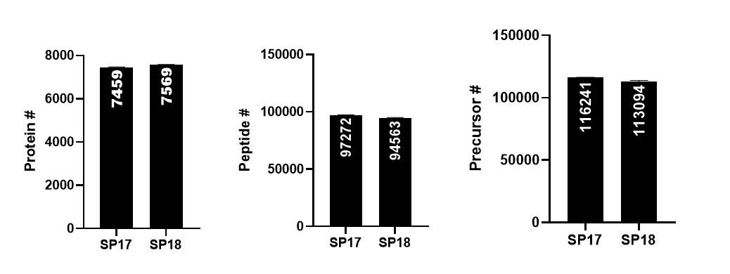 리스트를 보니 단백질 검출수가 약 5% 이상 증가될수 있다고 하네요. 17과 18버젼을 비교해보았습니다. 동일한 raw파일을 각각 default parameter로 검색을 하였습니다.