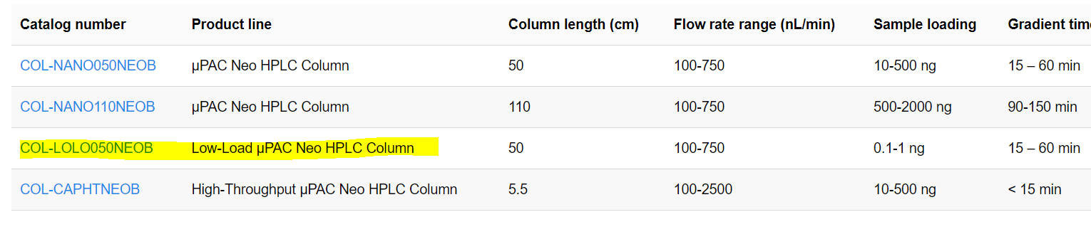 시료가 극미량일때는 아마 Low-Load µPAC Neo Column (50cm)이 더 효과적일듯합니다.