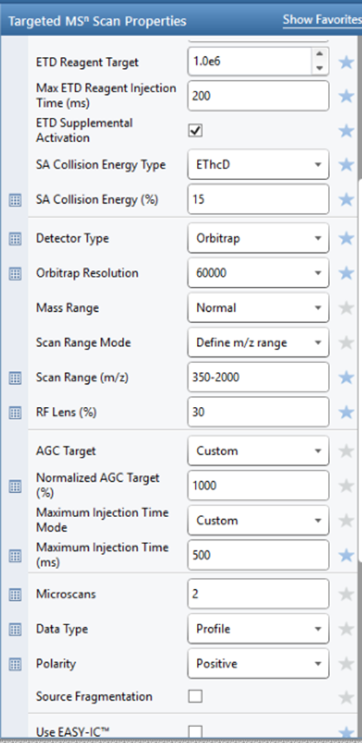 Orbitrap Eclipse에 포함되어 있는 Top-down 분석용 Method에서 EThcD를 사용한후 DB 검색을 해보았습니다. MS2 parameters는 아래와 같습니다.
