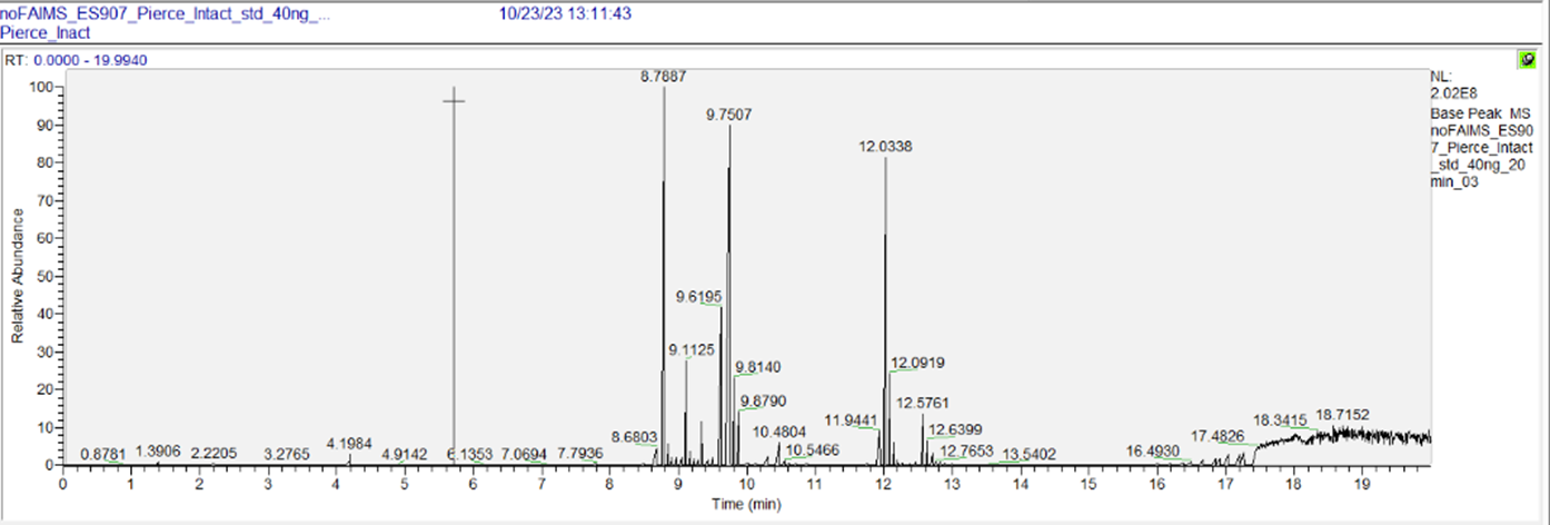 컬럼도 단백질용 EasySpray컬럼 (ES907)를 구매해서 분석해보았습니다.