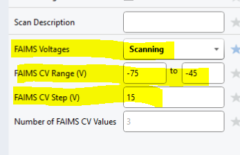 이번 업데이트 버젼에서는 다양한 FAIMS CV값을 한개의 experiment로 만들수 있습니다. 단 DDA만 가능하고 DIA는 불가능합니다.